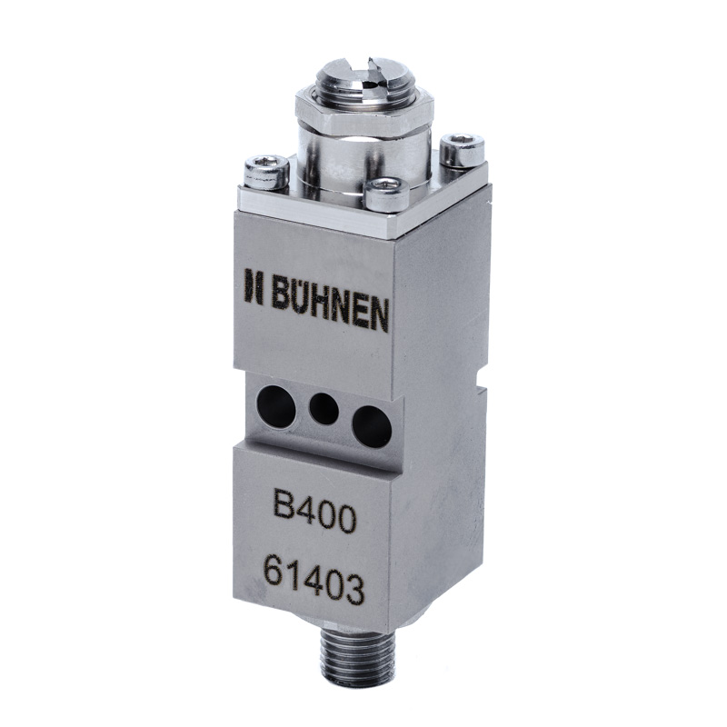 The B400 module has short control air paths. This results in rapid opening and very precise closing movement of the piston with the nozzle needle for a clean adhesive application. It is a standard module for dot and bead application.